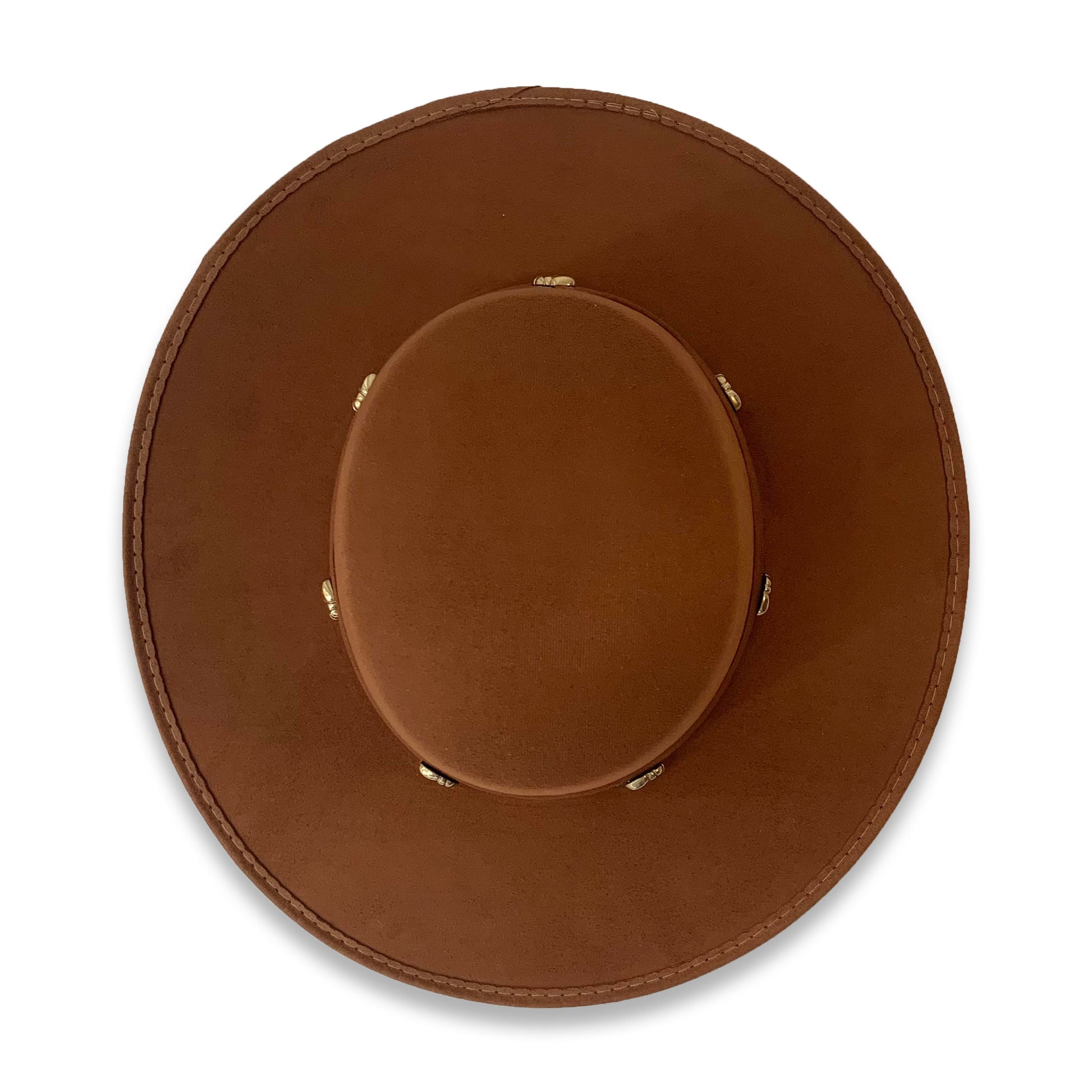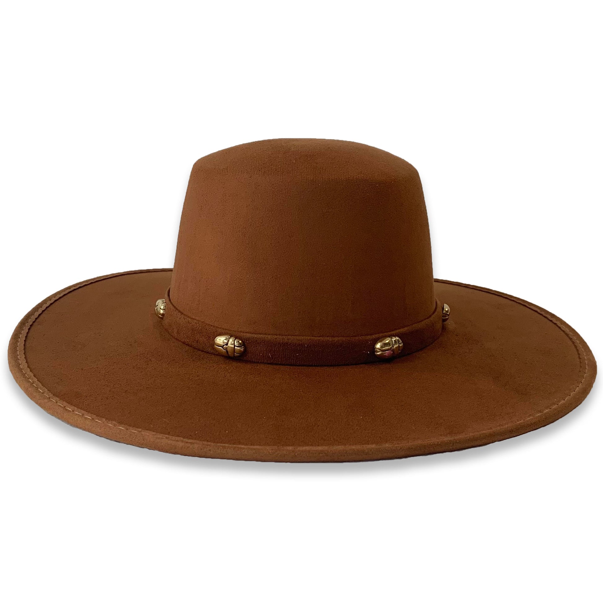 Sombrero de ante cordobés con aplicaciones de latón con baño de oro.