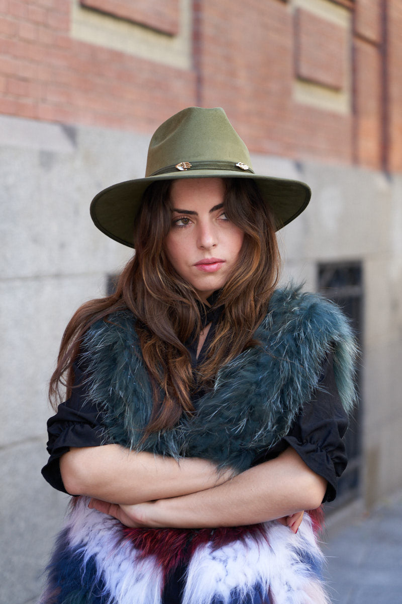 Sombrero de ante vaquero con aplicaciones de latón con baño de oro.